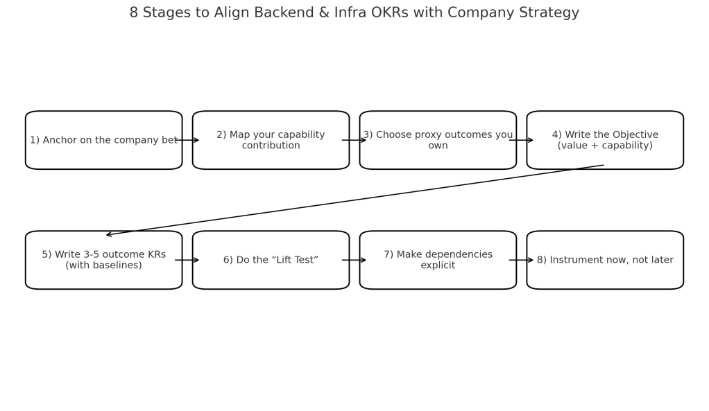 Let’s be honest: getting platform, backend, or infrastructure OKRs to truly line up with company strategy is hard—especially in big companies with long processes and many layers. The work feels indirect (“we don’t own MAU”), dependencies multiply, and goals often devolve into vague slogans.