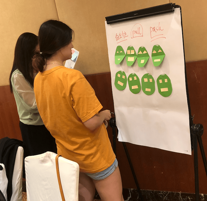 In Lisa’s workshops, she leverages large flip charts to visualize processes, uncover connections between problems and participants, and foster collaborative problem-solving within the team.